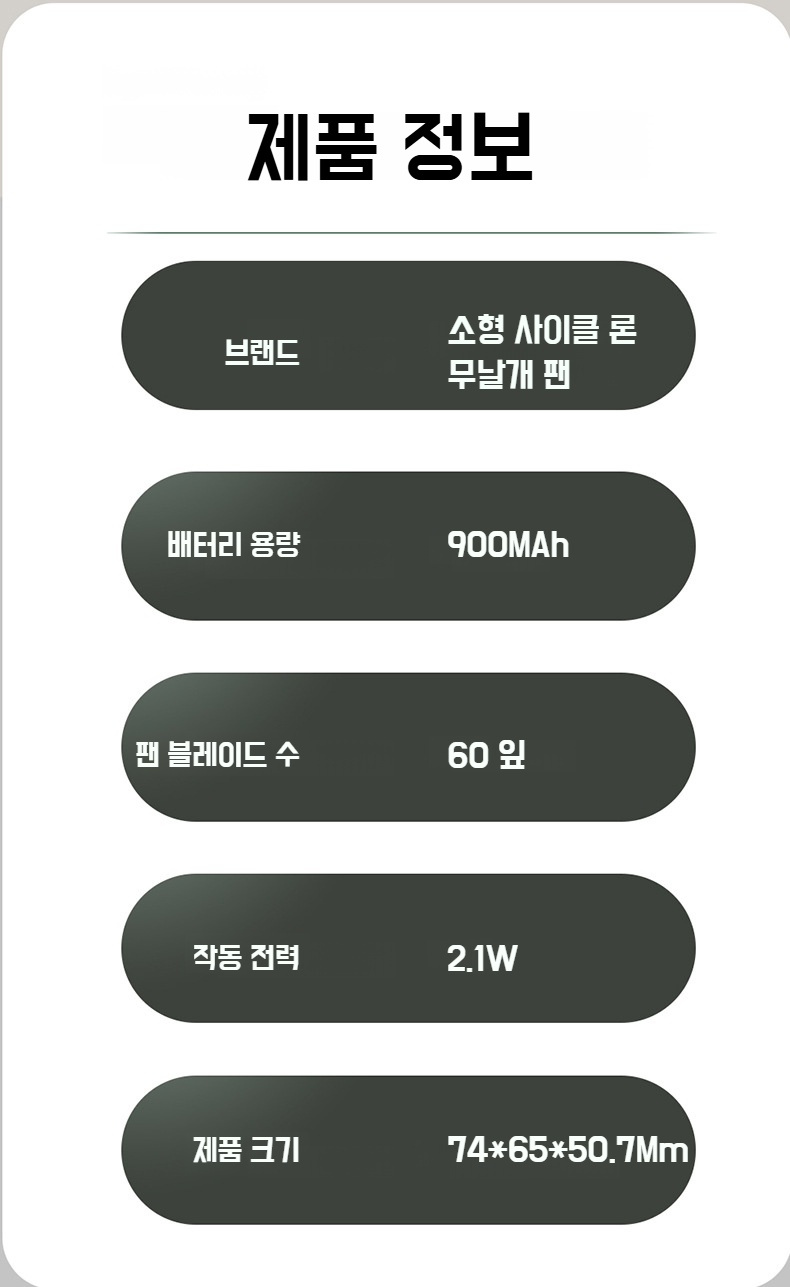 USB 충전 목 클립 선풍기 전체 모습